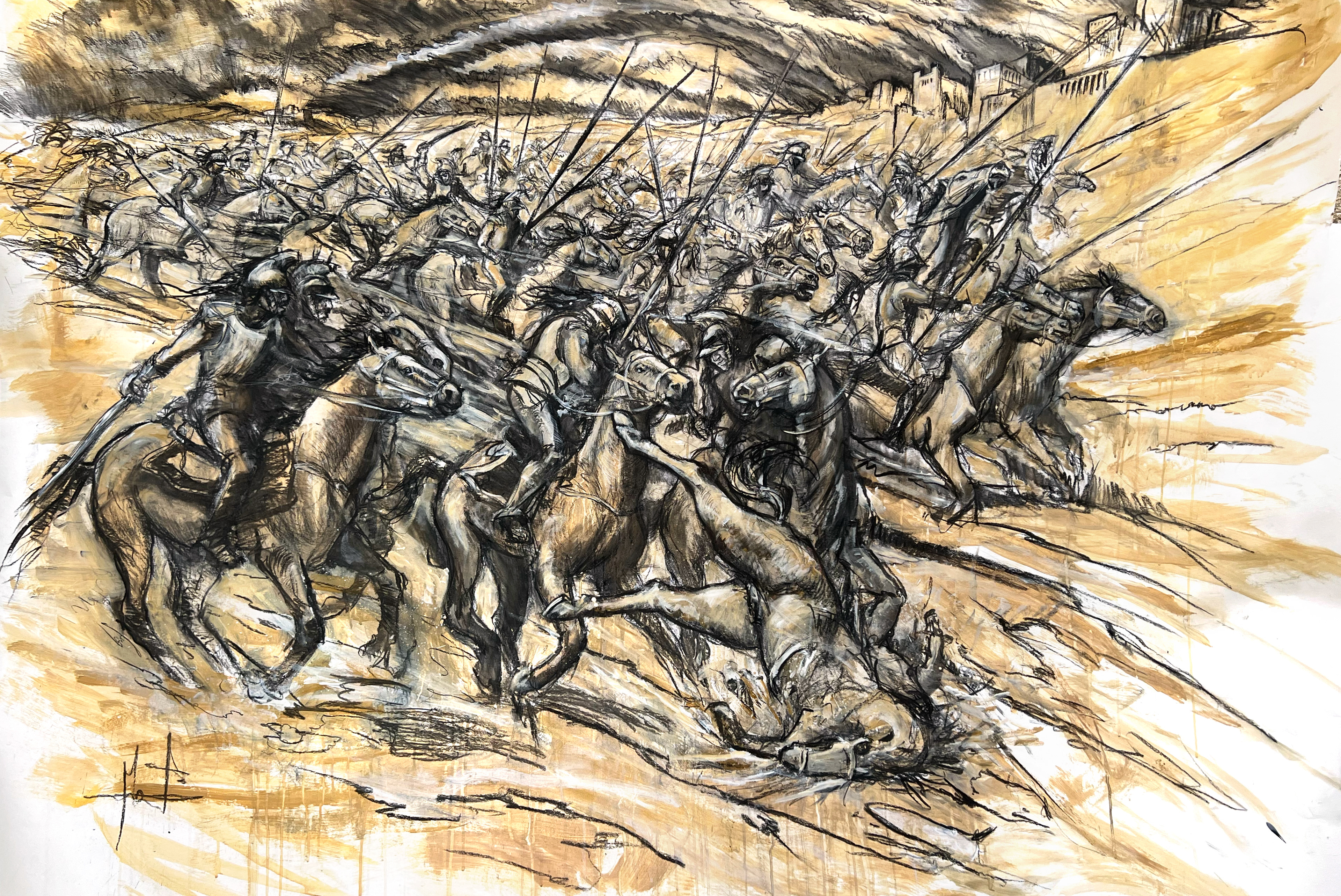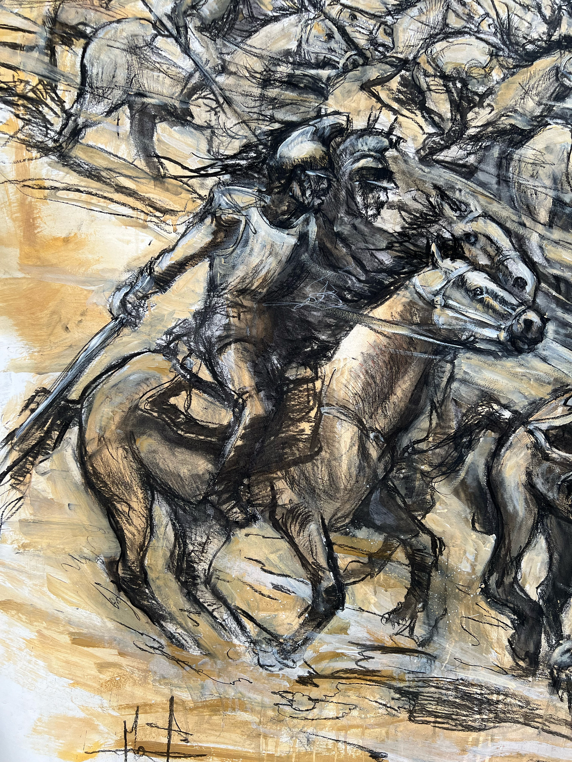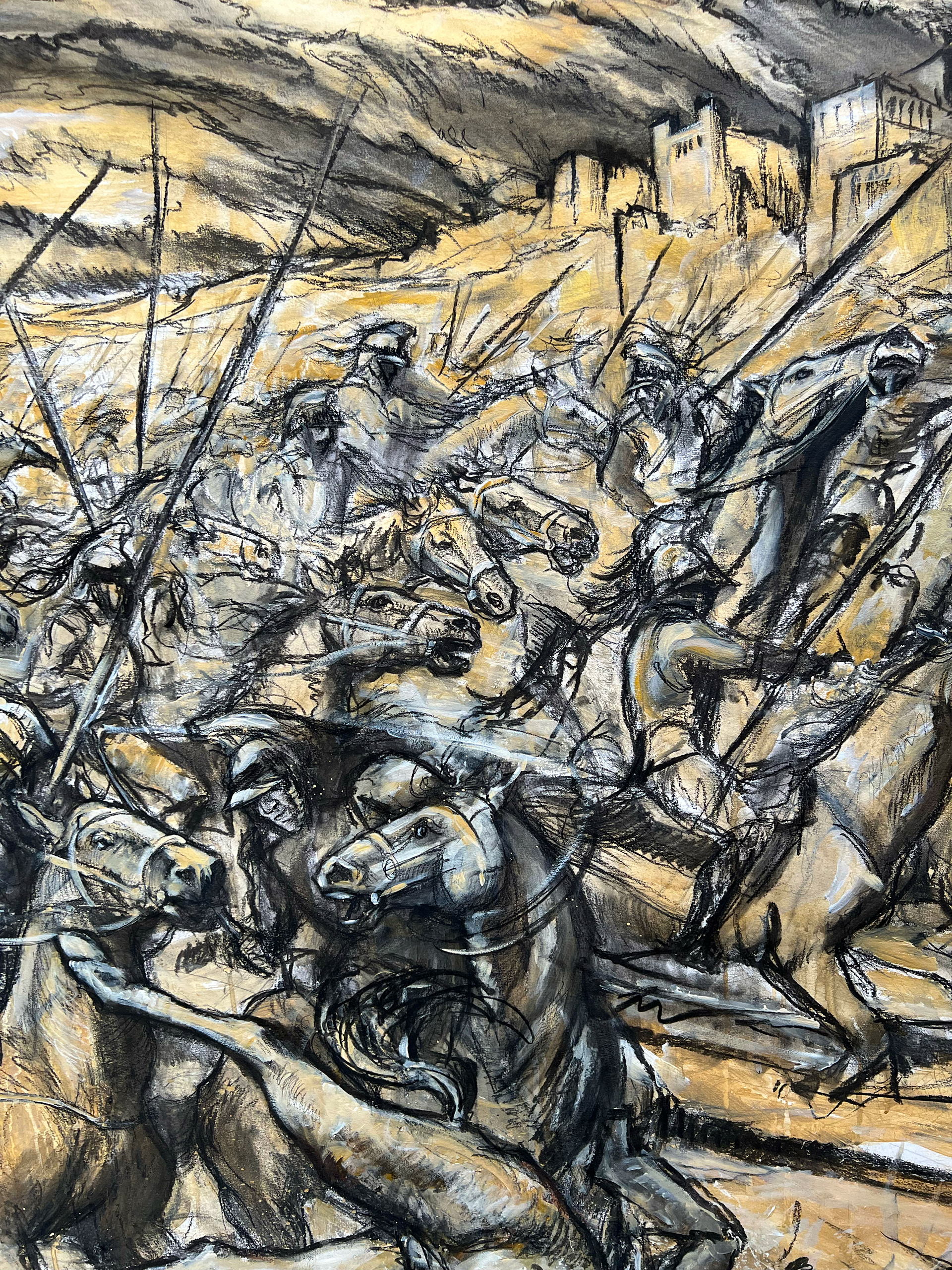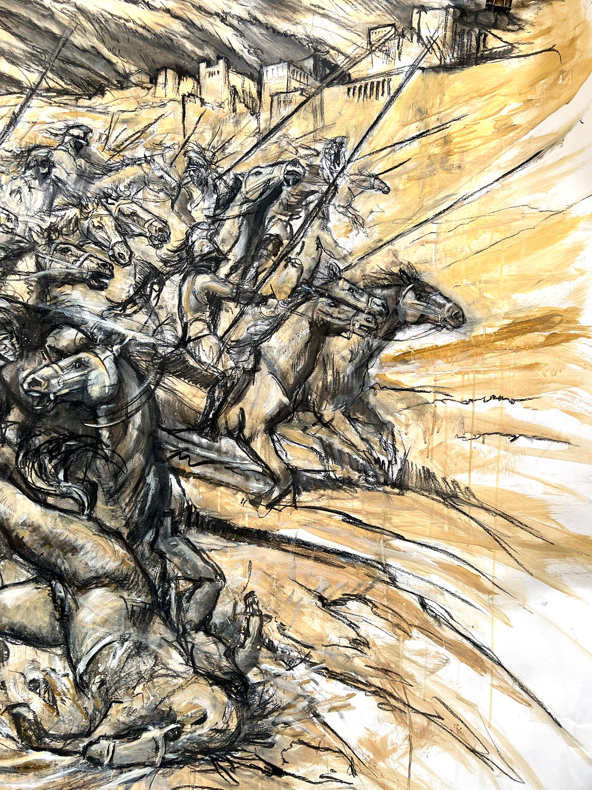 Dessin très grand format au fusain et à l'acrylique sur papier